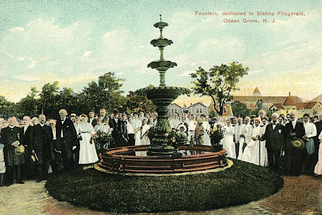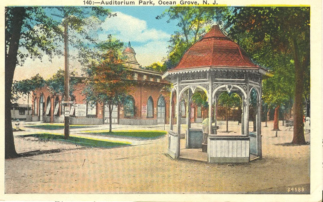 The Beersheba Well, located in Auditorium Park originated in June 1870 as the first "driven well" on the grounds, providing a vital source of pure water for the early camp meeting community. Initially a simple hand pump, the site was embellished in 1881 with a decorative octagonal wooden gazebo and named "Beersheba"—meaning "well of the oath"—to symbolize the founders' covenant to dedicate the land to God. Over the decades, the well became a landmark of the community, famously visited by temperance advocate Carrie Nation in 1901 and serving as a critical backup during a 1899 water system failure. In 1911, due to new sanitary laws banning common drinking cups, the traditional pump was replaced with a modern porcelain fountain supplied by artesian pipes. Despite the structure's decay over time, the Historical Society led major restorations in 1976 and 1994 to preserve the gazebo's Victorian "gingerbread" aesthetic, ensuring the landmark remains a functional and spiritual centerpiece of Auditorium Park today.